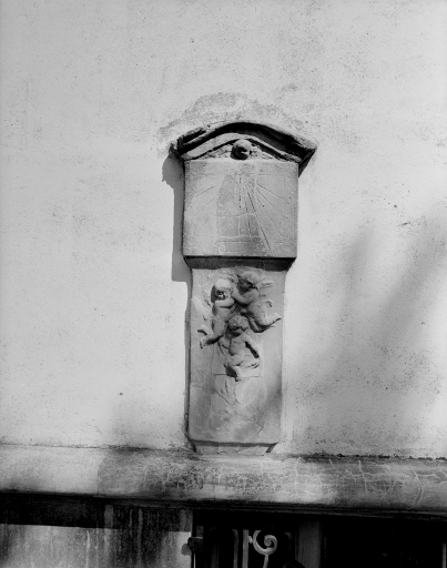 Vue générale du cadran solaire sur la façade latérale gauche.Immatriculation