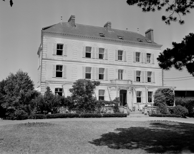 Vue d'ensemble de la façade postérieure sud sur jardin.Immatriculation