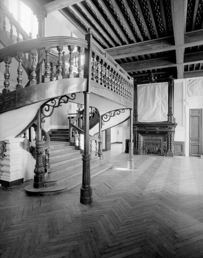 Escalier central du hall d'entrée avant restauration.Immatriculation