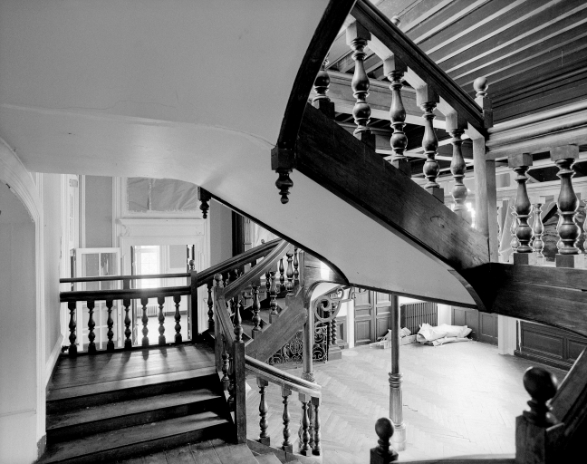 Escalier central du hall d'entrée, palier de repos et 2e volée.Immatriculation