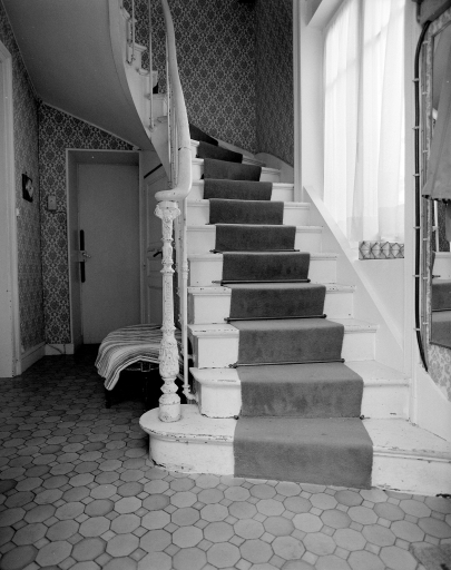 Détail de l'escalier intérieur 1ère volée vue de face.Immatriculation