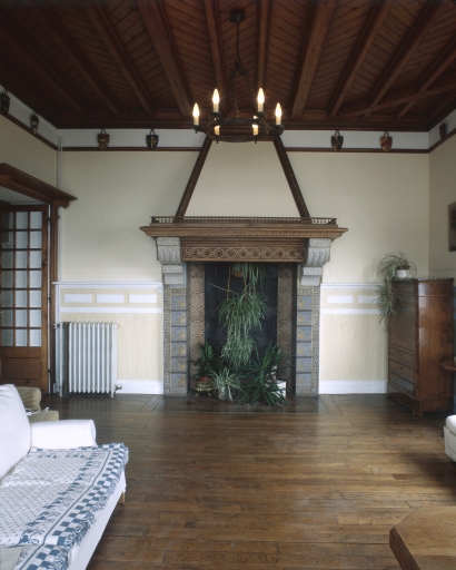 Vue générale de la cheminée dans le grand salon.Immatriculation