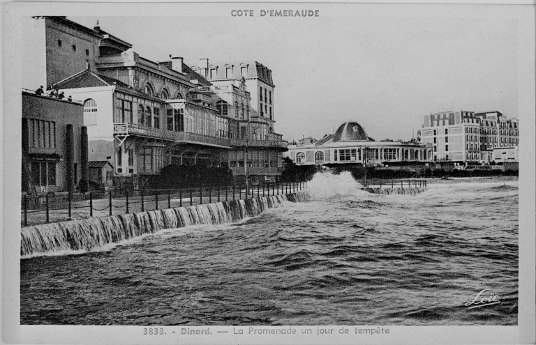 Carte postale ancienne. 3833. Dinard - La Promenade un jour de tempête.Immatriculation