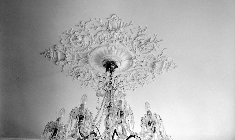 Rez-de-chaussée, salon : détail du plafond.Immatriculation