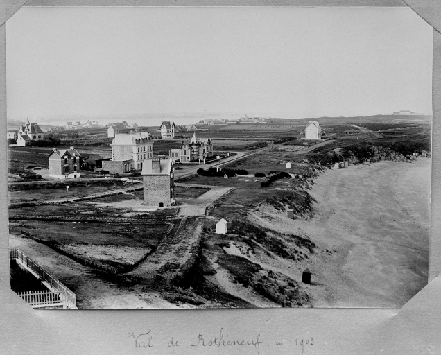 Photographie ancienne de la plage du Val à Rothéneuf en 1903.Immatriculation