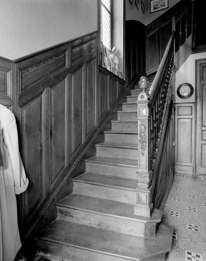 Escalier de distribution intérieure et demi-lambris mural.Immatriculation