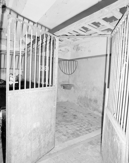 Vue générale de l'entrée d'une écurie.Immatriculation