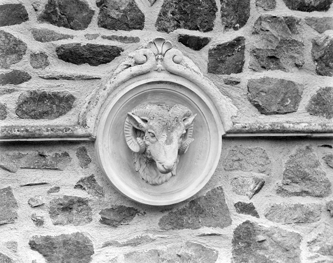 Communs : détail d'un médaillon, tête de bélier.Immatriculation