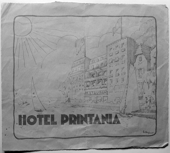 Elévation de la façade sur mer de l'hôtel.Immatriculation