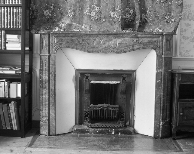 Cheminée en faux marbre, grand salon donnat sur la rue au rez-de-chaussée.Immatriculation