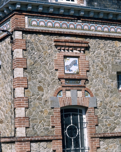 Elévation sud, détail de la frise de mosaïque.Immatriculation