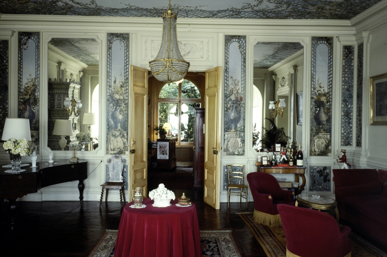 Vue d'ensemble de la pièce du salon avec la porte d'entrée.Immatriculation
