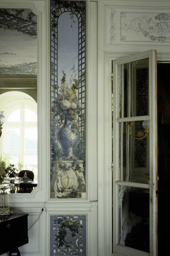 Encadrement des portes du salon avec bouquets peints.Immatriculation