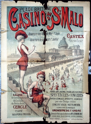 Plage bretonne, Casino de Saint-Malo, affiche grand format en couleur.Immatriculation