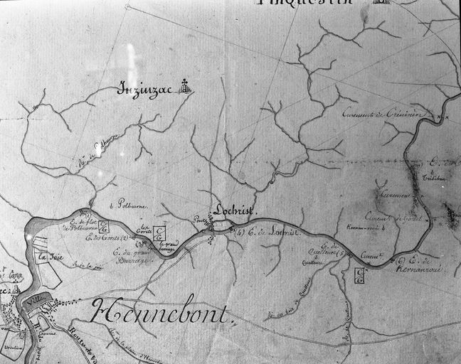 Carte de la rivière du Blavet, avant aménagement du canal (6 janvier 1804) : vue rapprochée d'Hennebont (D. D. E. Morbihan, Pontivy)Immatriculation