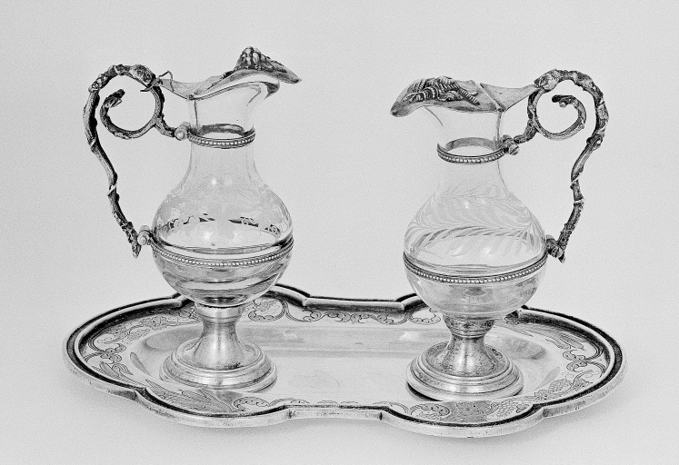 Plateau à burettes et deux burettes,