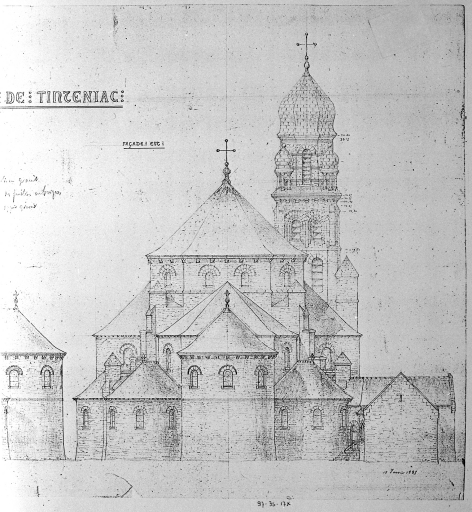 Projet pour l'église de Tinténiac : élévation de la façade est, dessin par Arthur RegnaultImmatriculation