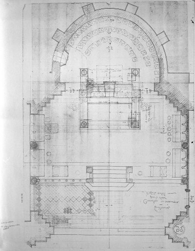 Projet pour l'église de Tinténiac : plan au sol, dessin par Arthur RegnaultImmatriculation
