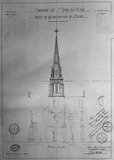 Projet de reconstruction de l'église : élévation principaleImmatriculation