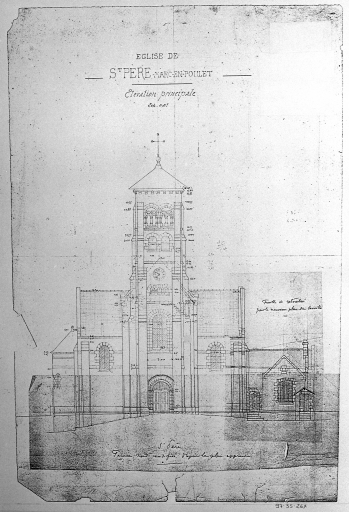 Elévation principale façade nord modifiée d'après le plan approuvé, et cloché modifiéImmatriculation
