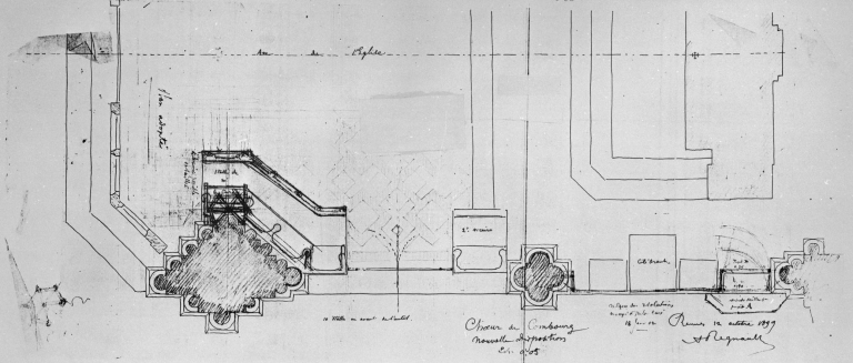 Choeur : plan au sol schématique de la moitié du choeur, côté Sud de l'égliseImmatriculation