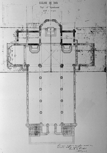 Plan au sol de l'église, projet d'agrandissement.Immatriculation