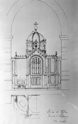 Projet de confessionnaux : élévation et demi-plan au sol de la partie gauche, par Arthur RegnaultImmatriculation