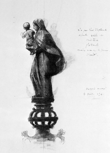 Croquis de la statue de la sainte Vierge : vue de 3/4 arrièreImmatriculation