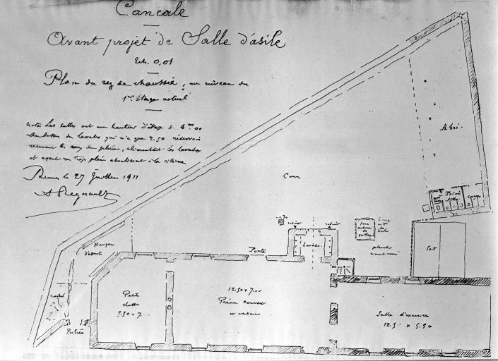 Premier projet du 27 juillet 1911 : plan de distribution du rez-de-chausséeImmatriculation