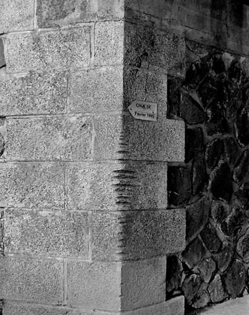 Culée est : traces d'usure du granite faites par des cordagesImmatriculation