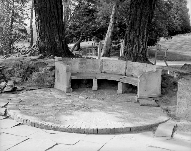 Vue extérieure de la terrasse latérale avec banc.Immatriculation