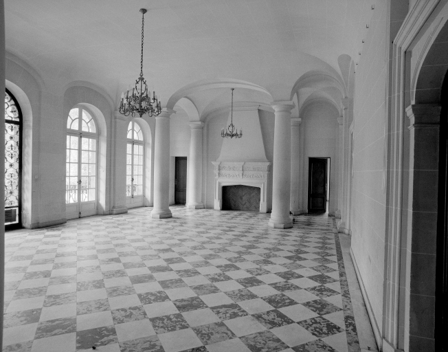 Vue générale du hall d'entrée avec cheminée.Immatriculation