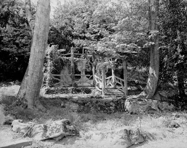 Détail d'un passage du parc, accès à la fabrique du jardin.Immatriculation
