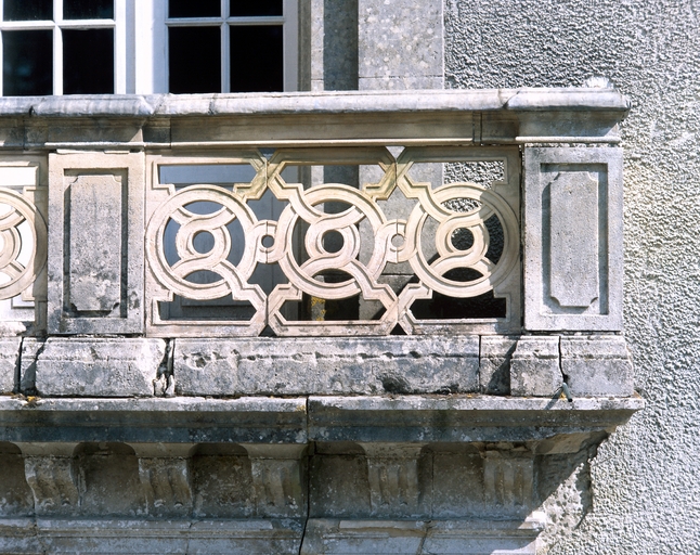 Elévation principale : détail du balcon.Immatriculation