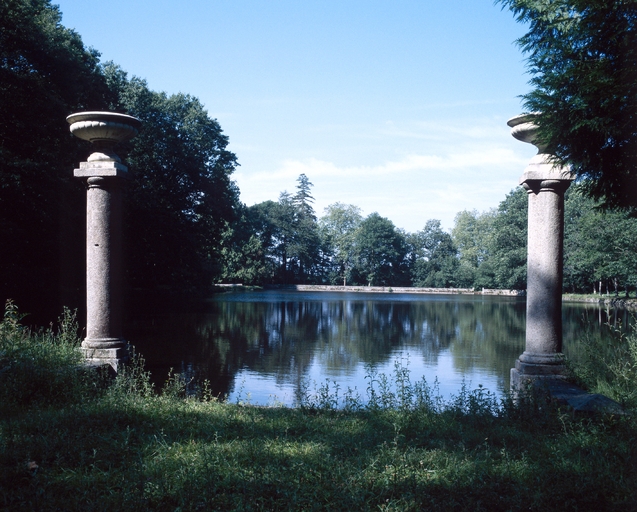 Vue générale de l'étang avec les colonnes.Immatriculation