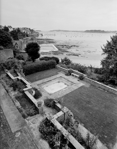 Jardin côté mer, vue d'ensemble avec le bassin.Immatriculation