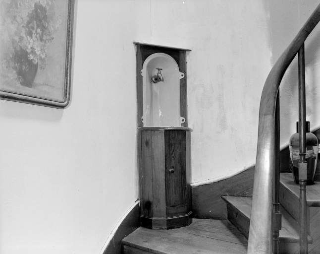 Vue générale du lavabo installé dans l'escalier, au 1er étage.Immatriculation