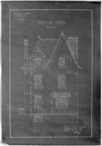 A la Vigie, villa. Elévation de la façade nord dressée le 20 janvier 1912.Immatriculation