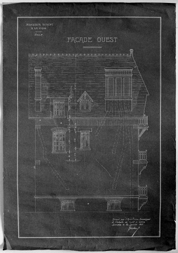A la Vigie, villa. Elévation de la façade ouest dressée le 20 janvier 1912.Immatriculation