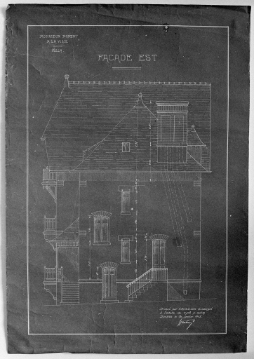 A la Vigie, villa. Elévation de la façade est dressée le 20 janvier 1912.Immatriculation