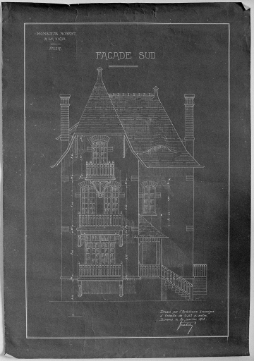 A la Vigie, villa. Elévation de la façade sud dressée le 20 janvier 1912.Immatriculation