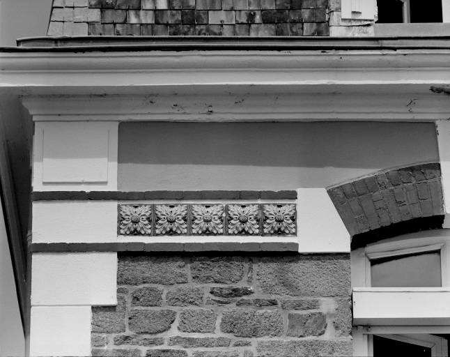 Saint-Malo. Villa, 13 quai Solidor, détail de la frise en céramique.Immatriculation