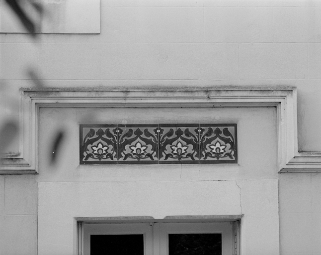 Saint-Malo. Villa l'Armoricaine, 29 boulevard Rochebonne, détail du décor en céramique.Immatriculation