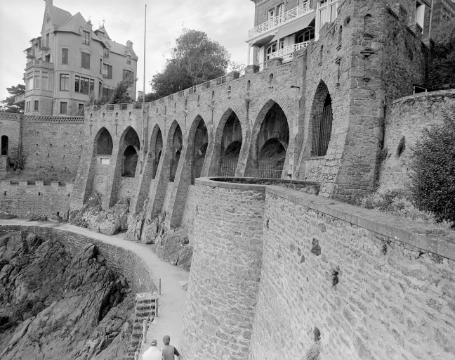 Vue prise de la terrasse circulaire avec contreforts de la villa Belle Assise.Immatriculation