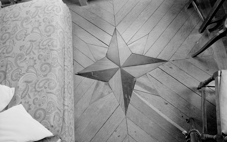 Le Petit Roc, plancher du bow-window (4 points cardinaux, la Rose des Vents).Immatriculation