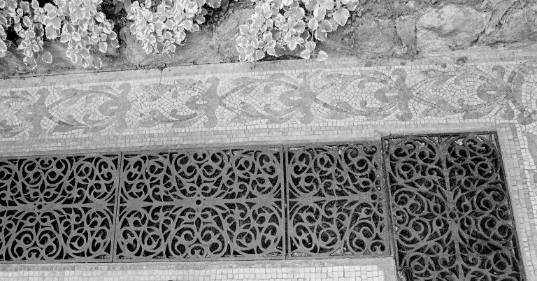 Détail du sol de la serre sur le pourtour.Immatriculation