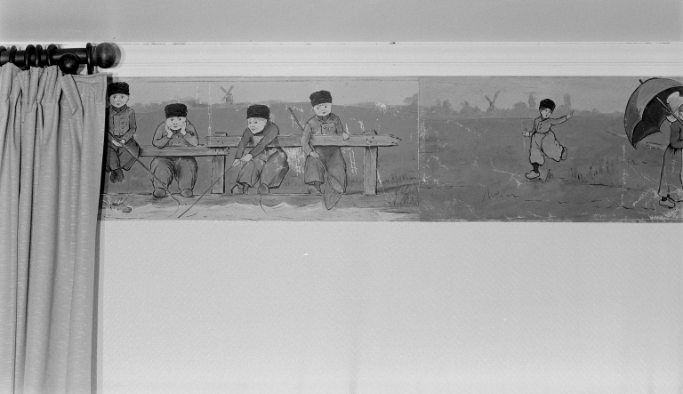 Salle à manger, décor toile peinte, décor hollandais avec personnages Hommes à la pêche.Immatriculation