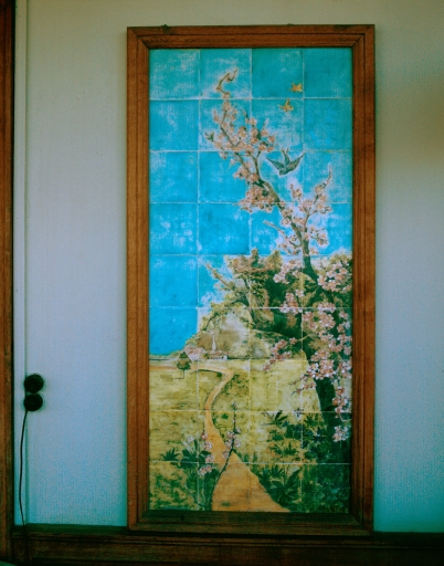 Bow-window, céramique décor printanier avec hirondelles de Mathilde Gauthier.Immatriculation