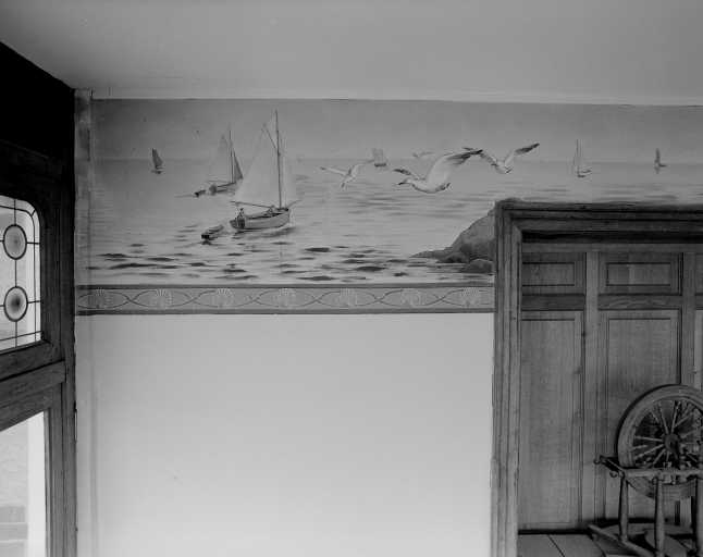 Bow-window, décor frise en toile peinte, décor marin.Immatriculation