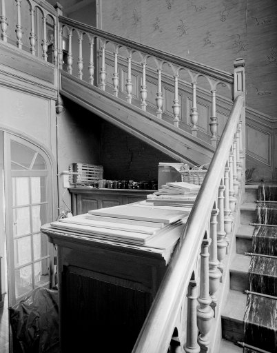 Vue de la rampe d'escalier et du coin bureau.Immatriculation